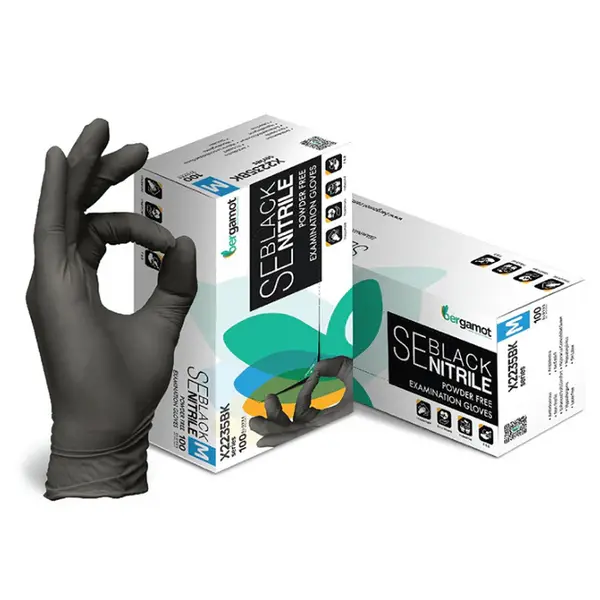 De Bergamot Nitrile wegwerphandschoenen zwart bieden betrouwbare bescherming én hoog draagcomfort. Ze zijn poedervrij en latexvrij, en voldoen aan belangrijke Europese normen: EN 455 (delen 1–4), EN 374 (delen 1–3), evenals EN 420. Met AQL 1,5 kwaliteitstest en CE-keurmerk, zijn ze gecertificeerd als medisch hulpmiddel (MDD / MDR klasse I) en persoonlijk beschermingsmiddel (PPE categorie III)